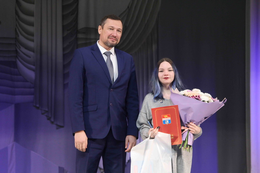 Денис Нестеров городскую премию в возрастной категории от 16 до 25 лет вручил студентке радиотехникума Софии Юриной. С первых лет учебы София зарекомендовала себя добросовестной и дисциплинированной студенткой. Отличница, участница студенческого конструкторского бюро, призер олимпиад и конкурсов разного уровня.