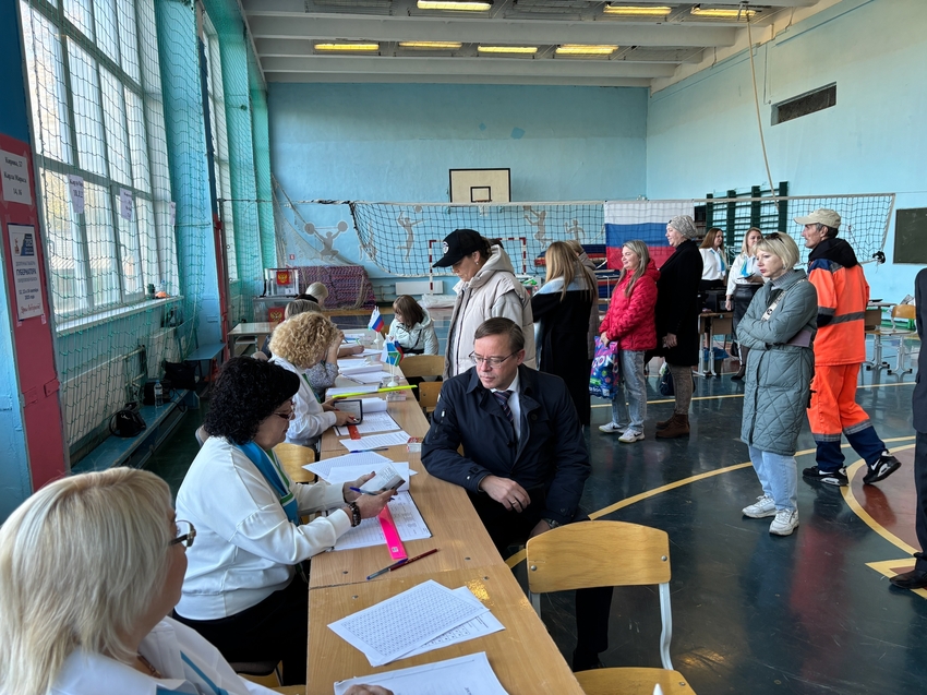 Одним из первых, кто отдал свой голос, стал глава города Алексей Герасимов. Он проголосовал на участке, расположенном в школе № 1.