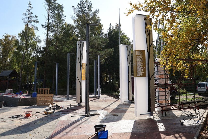 Важным художественным элементом обновлённой Аллеи станет «Лес памяти» - светопрозрачные конструкции с подсветкой. Здесь будут увековечены имена погибших каменских героев. В тёмное время суток опоры будут подсвечиваться белым светом, а раз в день будет включаться красная подсветка. Монтаж «Леса памяти» уже идет, установлены две опоры, опробована их подсветка.