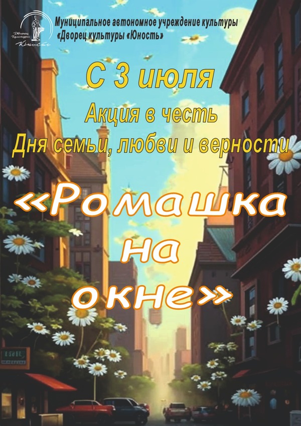 Накануне праздника, с 3 июля, мы запускаем акцию «Ромашка на окне». Давайте позовём счастье в свой дом, давайте поделимся своим счастьем с другими!
