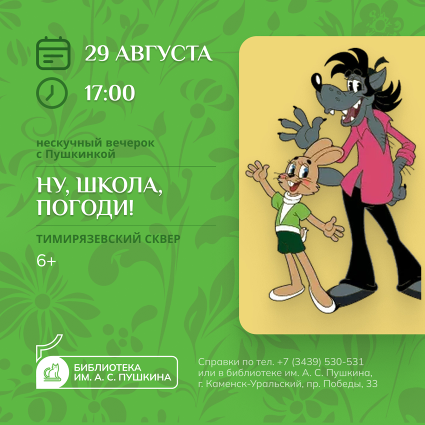 29 августа в 17-00 библиотекари Пушкинки приглашают всех желающих в Тимирязевский сквер провести нескучный вечерок со сказочными героями.