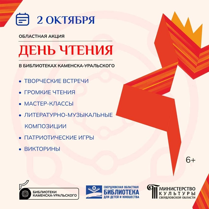 2 октября 2025 года Свердловская область в десятый раз проводит масштабную Областную акцию «День чтения». В этом году событие посвящено 80-летию Победы в Великой Отечественной войне и Году защитника Отечества. Под общим девизом «Читать, чтобы помнить!» и темой «Память, застывшая в строках» муниципальные библиотеки Каменска-Уральского подготовили насыщенную программу мероприятий, направленную на сохранение исторической памяти и популяризацию чтения.