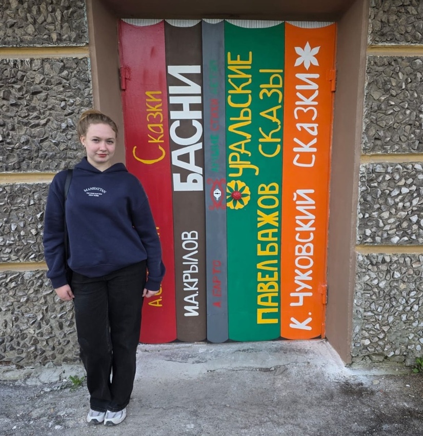 Настя решила поучаствовать в преображении знакового для посёлка учреждения культуры – библиотеки № 17. Бывшая библиотека профкома КУМЗа находится в ДК «Металлург» и по-прежнему обслуживает работников завода, а также их детей. В общей сложности это почти пять тысяч читателей, и все они попадают в книжное царство через двери, которые Анастасия превратила в настоящий арт-объект!