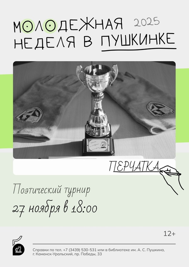27 ноября в 18 часов в рамках Молодежной недели в Пушкинке состоится поэтический турнир «Перчатка».