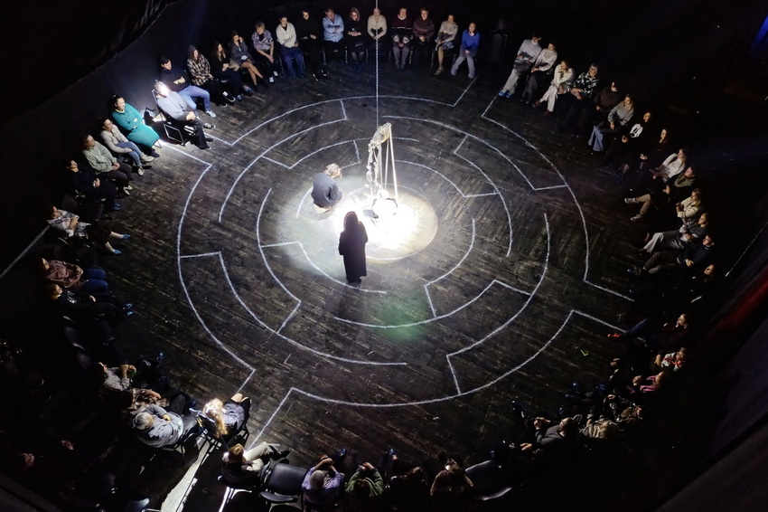 Главный режиссёр Драмы Номер Три Александр Балыков представил зрителям, зарегистрировавшимся заранее в интернете, свой личный проект «Hamlet. Прощай». В нём он выступает и как режиссёр, и как исполнитель заглавной роли. С ним на сцене, в качестве артиста, работает и сценограф Лев Низами. Авторы спектакля позвали с собой в работу ещё двух актрис: Анну Котомину (Гертруда) и Наталью Епонешникову (Офелия). Автор инсценировки по нескольким пьесам Шекспира - режиссёр Александр Балыков. Представление рассчитано на 70 зрителей, которые расположены вокруг нарисованного на сцене кругового лабиринта. В центре этого лабиринта и находится скелет подвешенный на цепи.