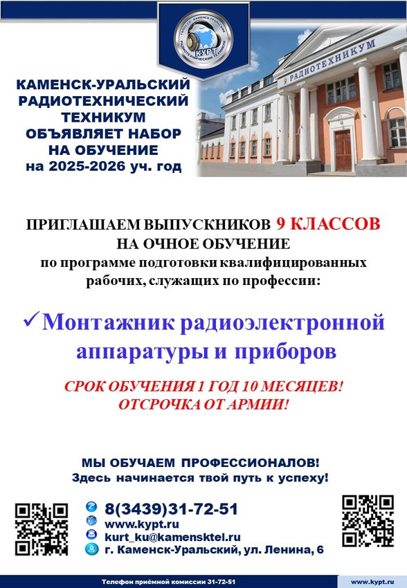 Каменск-Уральский радиотехникум объявляет набор
