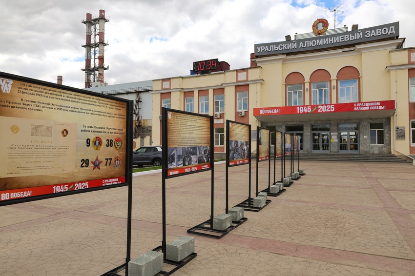 В преддверии 9 мая на площади перед центральной проходной Уральского алюминиевого завода открылась выставочная экспозиция, посвященная вкладу предприятия в победу в Великой Отечественной войне.