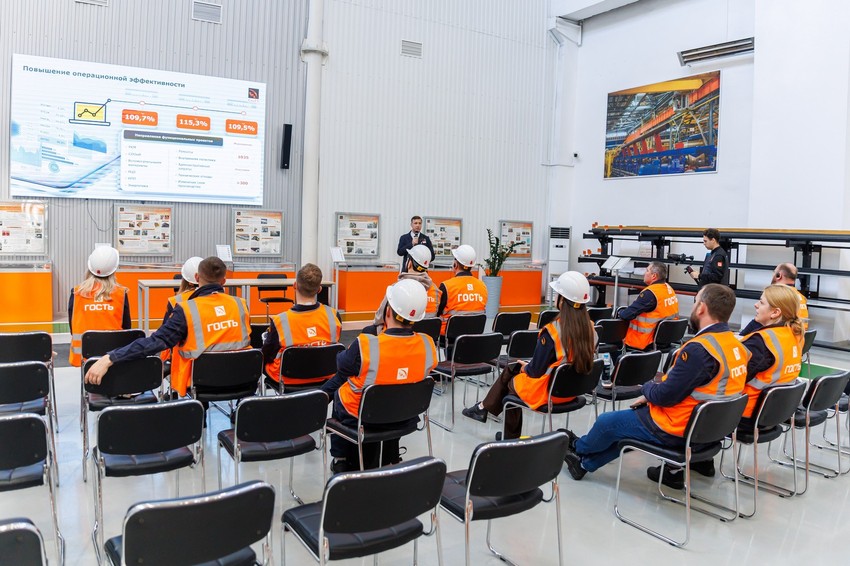 Участникам делегации на практических примерах показали, как «Биржа идей» помогает сотрудникам предлагать и внедрять улучшения, как цифровая доска позволяет оперативно решать проблемы.