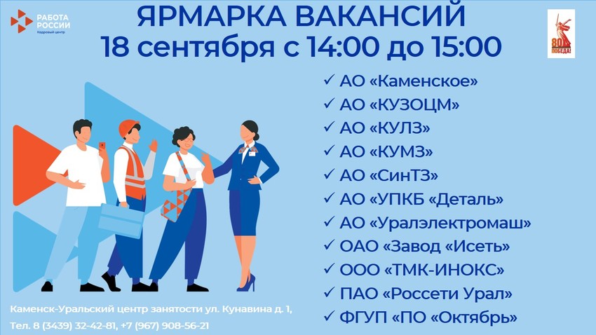 18 сентября в Каменск-Уральском центре занятости пройдет ярмарка вакансий.