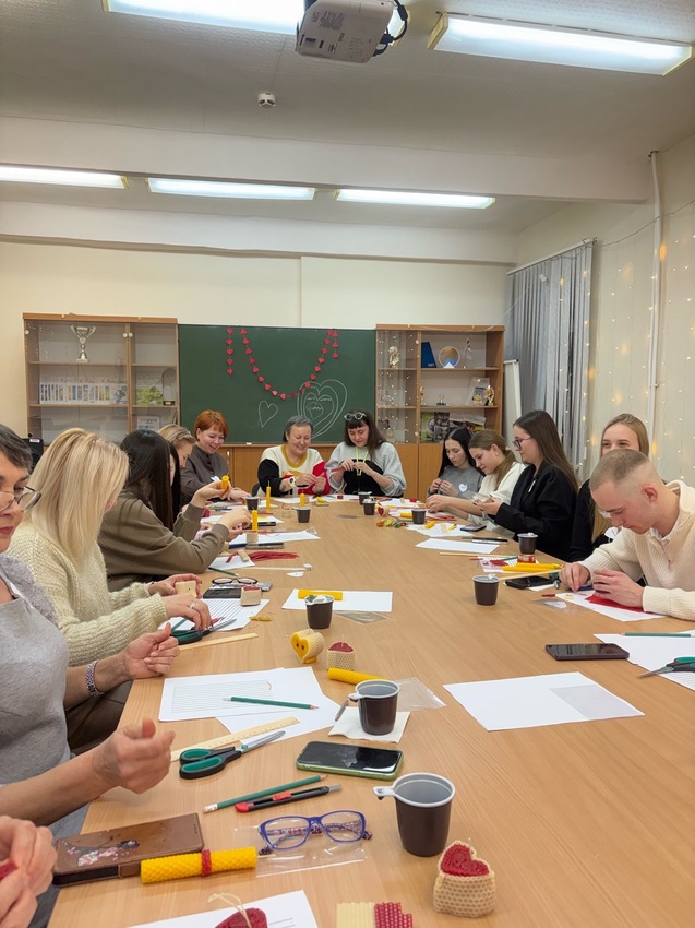 Всё началось с двух душевных мастер-классов. Первый — семейный, для родителей с детьми, где создавали валентинки (https://vk.com/wall-205722968_2694). Второй — для взрослых: уазовцы под руководством Марии Киселевой мастерили свечи-сердца из натуральной вощины. Мягкий воск, уютный свет и тепло рук — такие свечи стали идеальным подарком для любимых.
