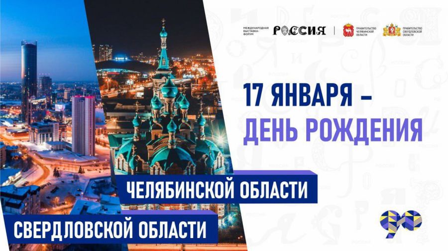 Свердловская область отметит 90-летие на международной выставке-форуме «Россия» в Москве. 17 января праздничные мероприятия пройдут на стенде региона и других площадках ВДНХ. Часть программы организована совместно с Челябинской областью. Соседний регион, как и Свердловская область, был выделен из Уральской области в этот день в 1934 году.