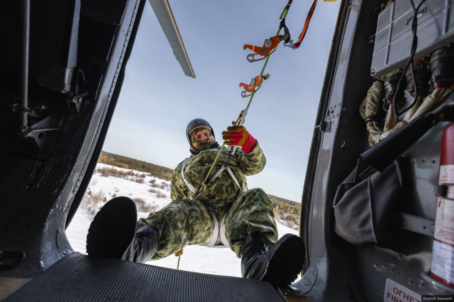 «В ходе тренировок прорабатываются различные сценарии, которые после могут произойти уже на пожарах. В тот момент все действия наших ребят должны быть отлажены до автоматизма, чтобы ничто не угрожало их безопасности. Поэтому при спусках с вертолёта, например, поэтапно изменяется высота, с которой они происходят — от 10 до 40 метров. Не всегда удаётся найти удачную „площадку“ для высадки в лесу, и тогда вертолёт зависает прямо над деревьями. Минимальное количество человек, из которых сформированы группы борьбы с пожарами в труднодоступных местах, составляет 4-5 специалистов», — рассказал исполняющий обязанности директора Уральской авиабазы Александр Петров.