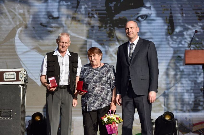 На торжественном мероприятии, посвященном 325-му дню рождения города Сухой Лог, глава региона вручил награды крепким семьям — юбилярам семейной жизни. Знак отличия Свердловской области «Совет да любовь» за 50 лет совместной жизни и воспитание детей получили Людмила и Сергей Сарбаевы, Надежда и Владимир Шараповы, а также Любовь и Геннадий Савины. Помимо этого, общественную награду «За любовь и верность», которую вручают за 25 лет совместной жизни, получили Любовь и Александр Константиновы.