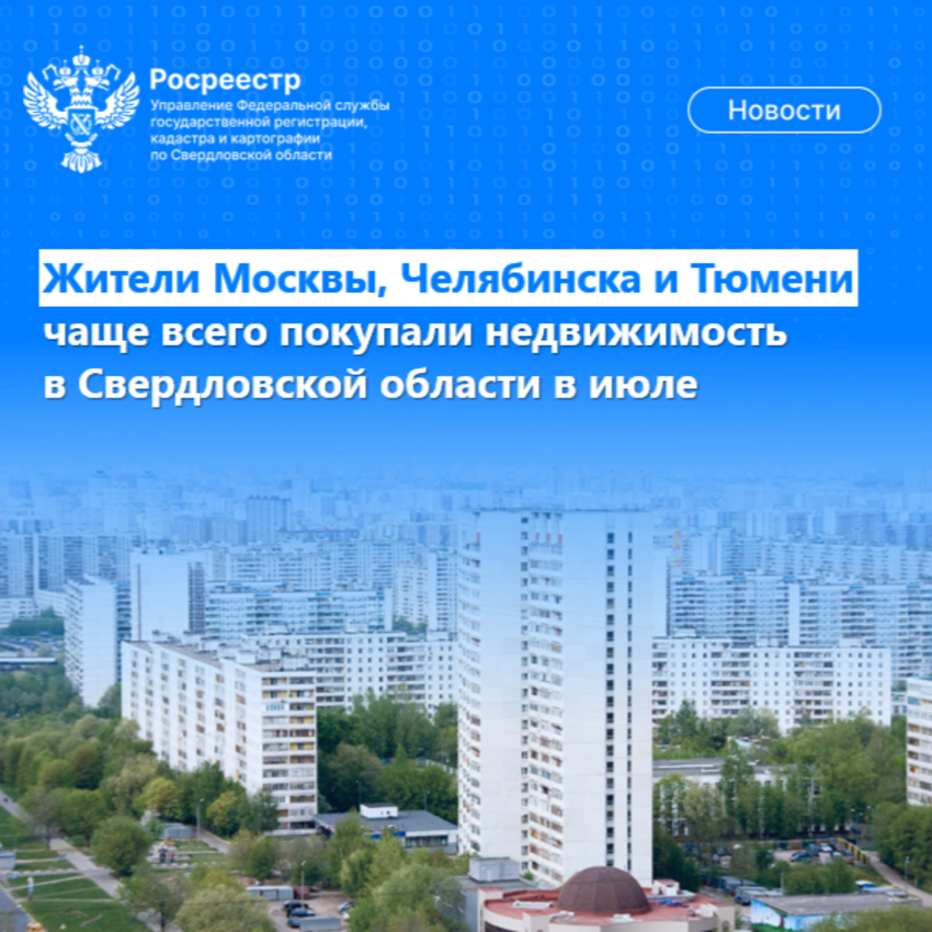Росреестр рассказал жители каких регионов чаще всего покупали свердловскую недвижимость в июле