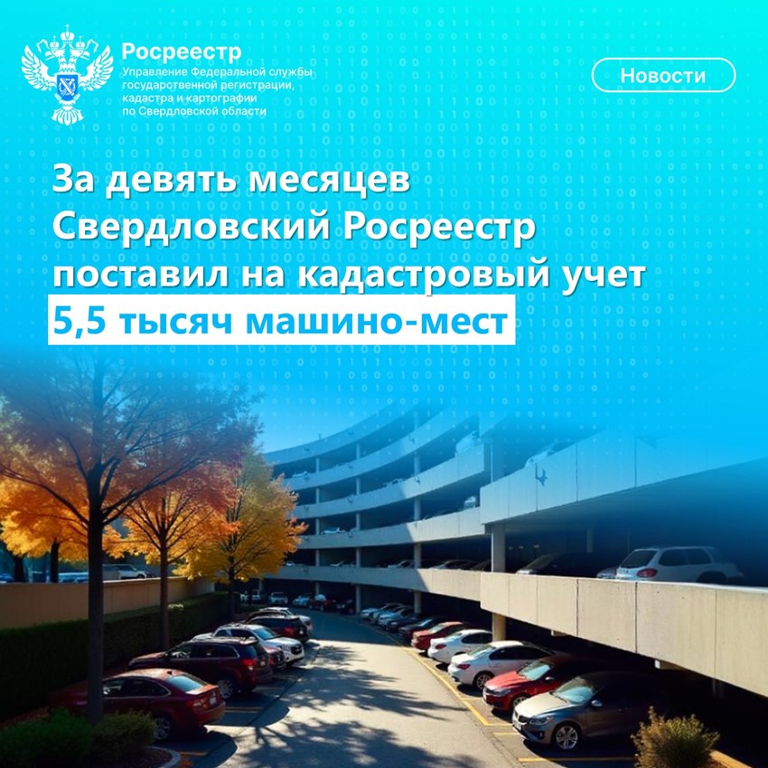 За девять месяцев 2025 года Свердловский Росреестр поставил на кадастровый учет 5511 машино-мест, что превышает показатели аналогичного периода прошлого года на 3,2%, когда показатель составил 5341.