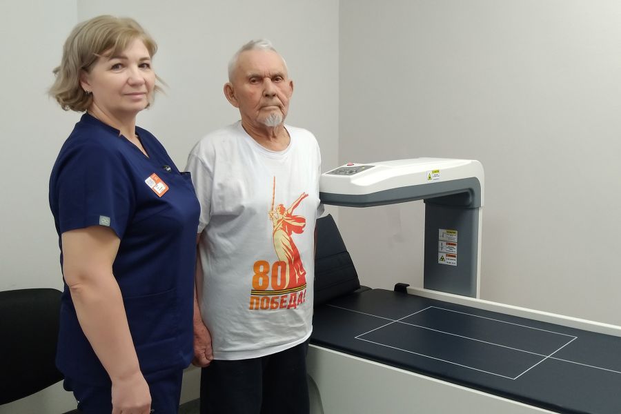 Ветерану провели ЭКГ, рентгенографию, УЗИ сердца, органов брюшной полости и почек, пульсоксиметрию и другие обследования. Дополнительно, с учётом возраста пациента, медики выполнили денситометрию на аппарате последнего поколения для оценки плотности костей.