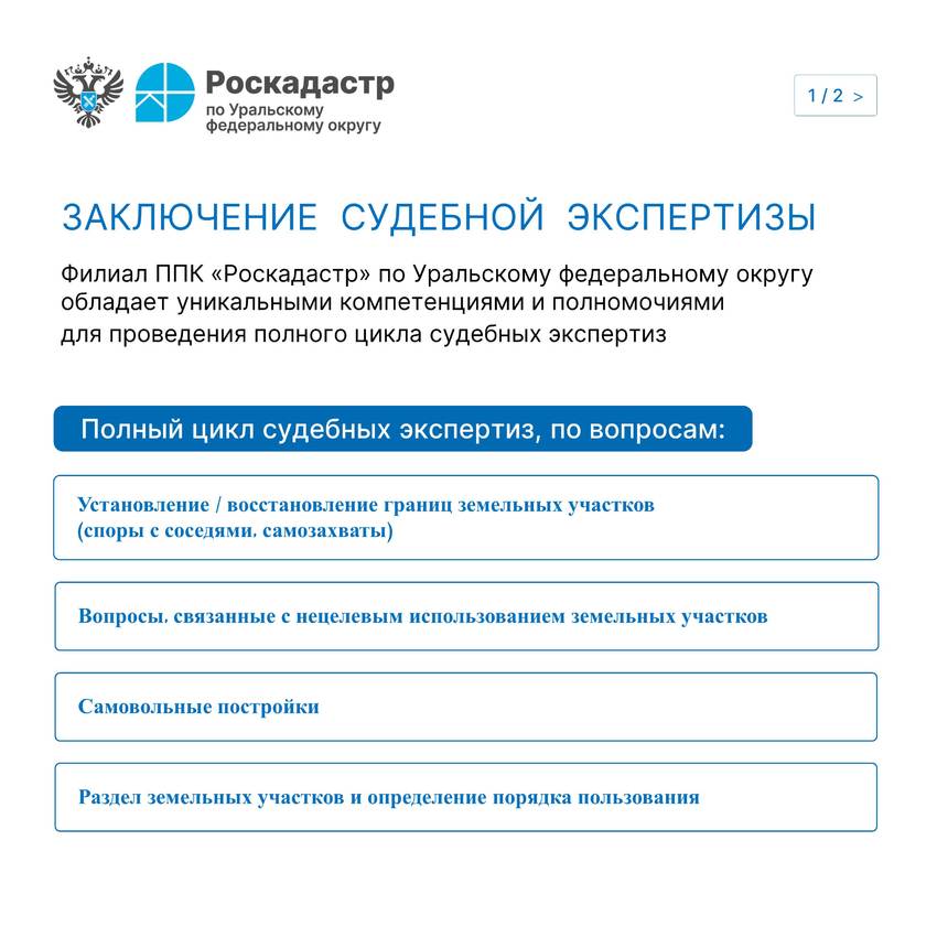 Филиал ППК «Роскадастр» по Уральскому федеральному округу обладает уникальными компетенциями и полномочиями для проведения полного цикла судебных экспертиз.